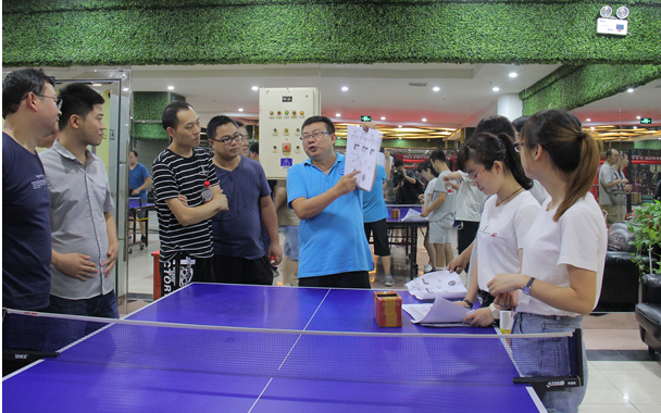 接下來進(jìn)行的是乒乓球、臺(tái)球比賽,兩項(xiàng)運(yùn)動(dòng)同時(shí)展開。乒乓球比賽共有18位員工參加。每個(gè)員工都不甘示弱,使出自己的看家本領(lǐng)。搓球、刁球、旋轉(zhuǎn)球、反手球,你來我擋、戰(zhàn)況激烈,看的人眼花繚亂。